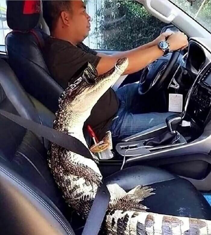 This funny animal photo proves that wild animals aren’t always as wild as they seem, and this alligator seems pretty comfortable sitting in a car and wearing sunglasses for the journey!