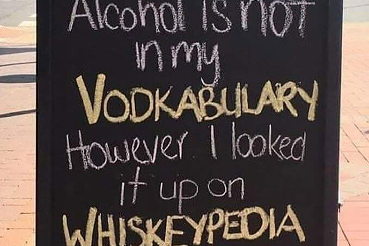 If you’re not a fan of puns, this sign might just convert you, and if you already enjoy them, you’re in for a treat. This message appears to be displayed at a bar and it goes like this: “Alcohol is not in my Vodkabulary. However, I looked it up on Whiskeypedia and learned if you drink too much, it’s likely Tequilya.” That’s a clever play on words.