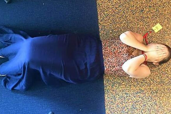 At a particular event, a woman discovered that her outfit perfectly matched the carpet she was standing on. The similarities were so precise, especially her unique top, that the coincidence seemed almost too good to be true.