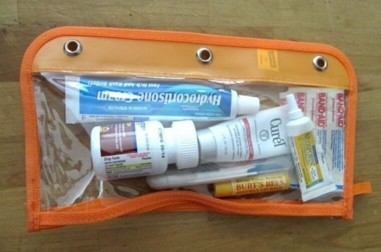 It can sit in your glove box or car boot for those social emergencies, so you’re always looking your best. Aside from a few first aid bits like band-aids, think lip balm, travel deodorant, mini toothpaste, small tubs of moisturizer and body lotion, and maybe even a spare mascara and lipstick?