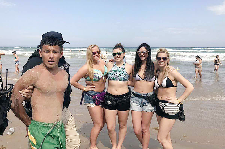 This vacation photo might not be the kind that you’d frame and put on display. Then again, who knows? Maybe it will turn out to be a cherished memento unexpectedly! It’s very likely that the women in the picture find it much more amusing than the man does. Sometimes, being in the right place at the right time can lead to such interesting situations.
