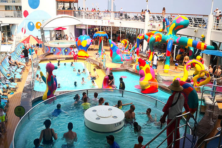 The pool, a central feature on cruise ships, often falls short of a tranquil retreat.