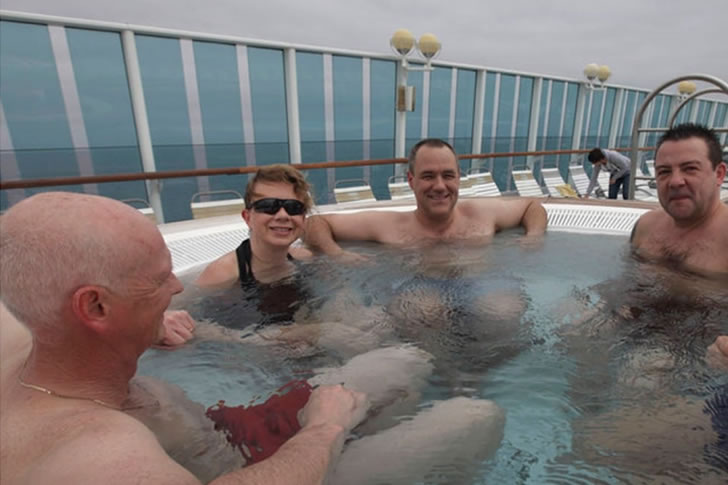 It offers an opportunity to meet new people, yet you may prefer to bypass the hot tub altogether. Consider taking a walk around the deck first, familiarizing yourself with the ship, before considering a dip in the bustling hot tub waters.