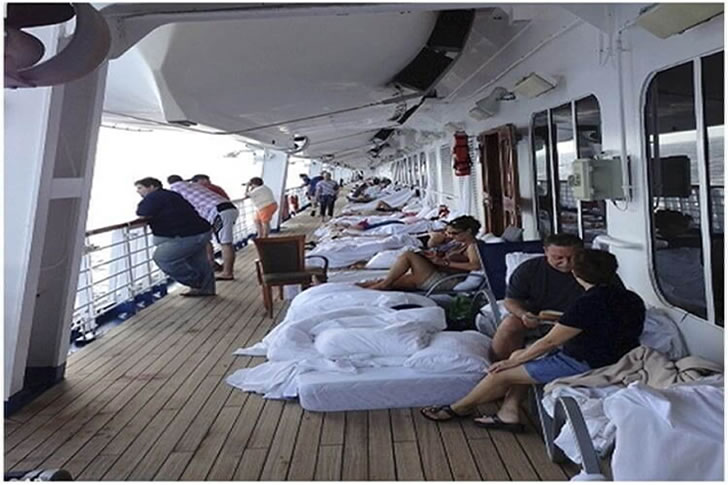 When deck chairs are scarce, some resourceful passengers resort to bringing mattresses outdoors. In comparison, a mattress might even trump a deck chair for comfort.